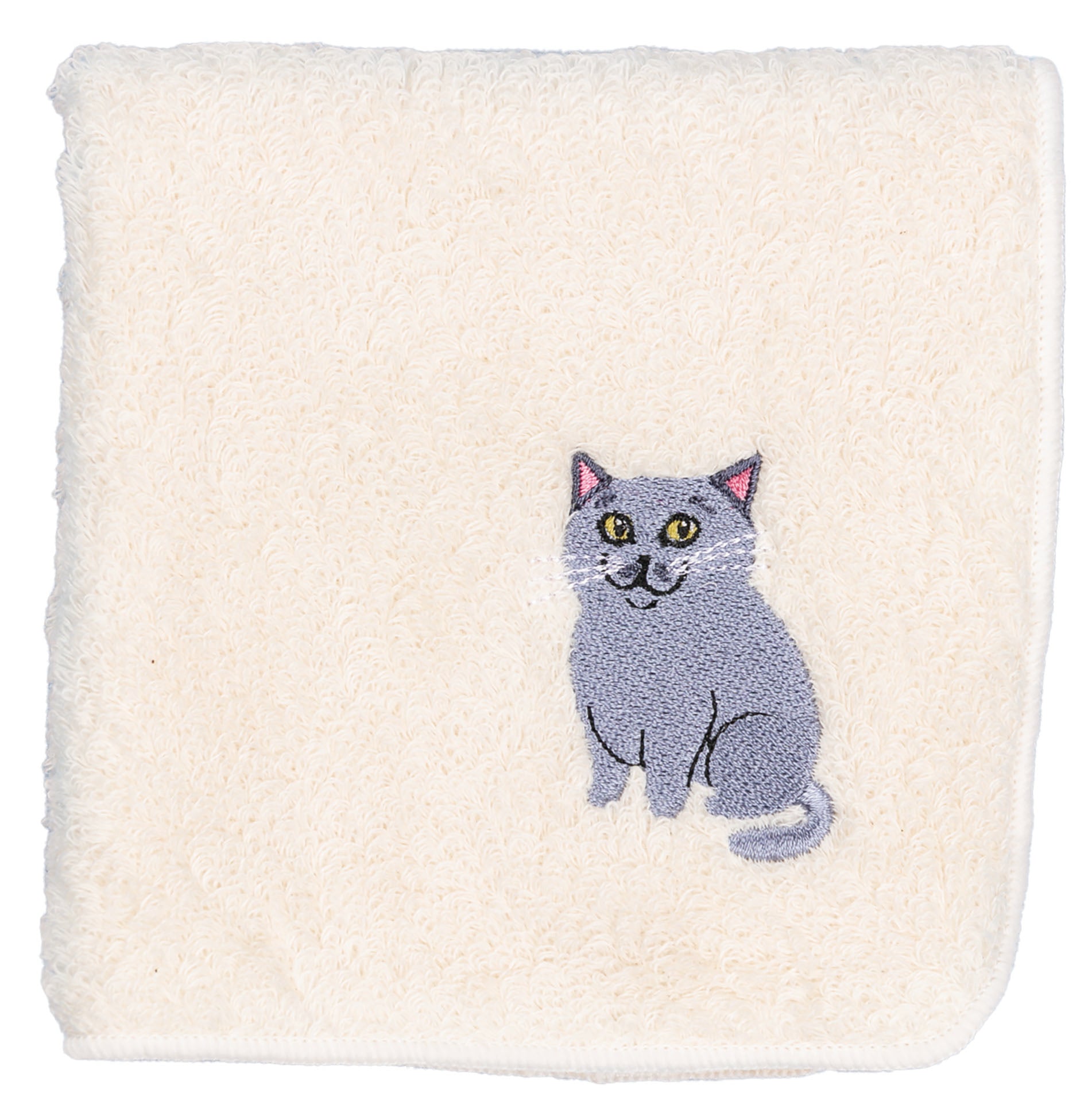 【HHD】 Japan Organic Cotton Embroidered Square Handkerchief - Russian blue cat (White)