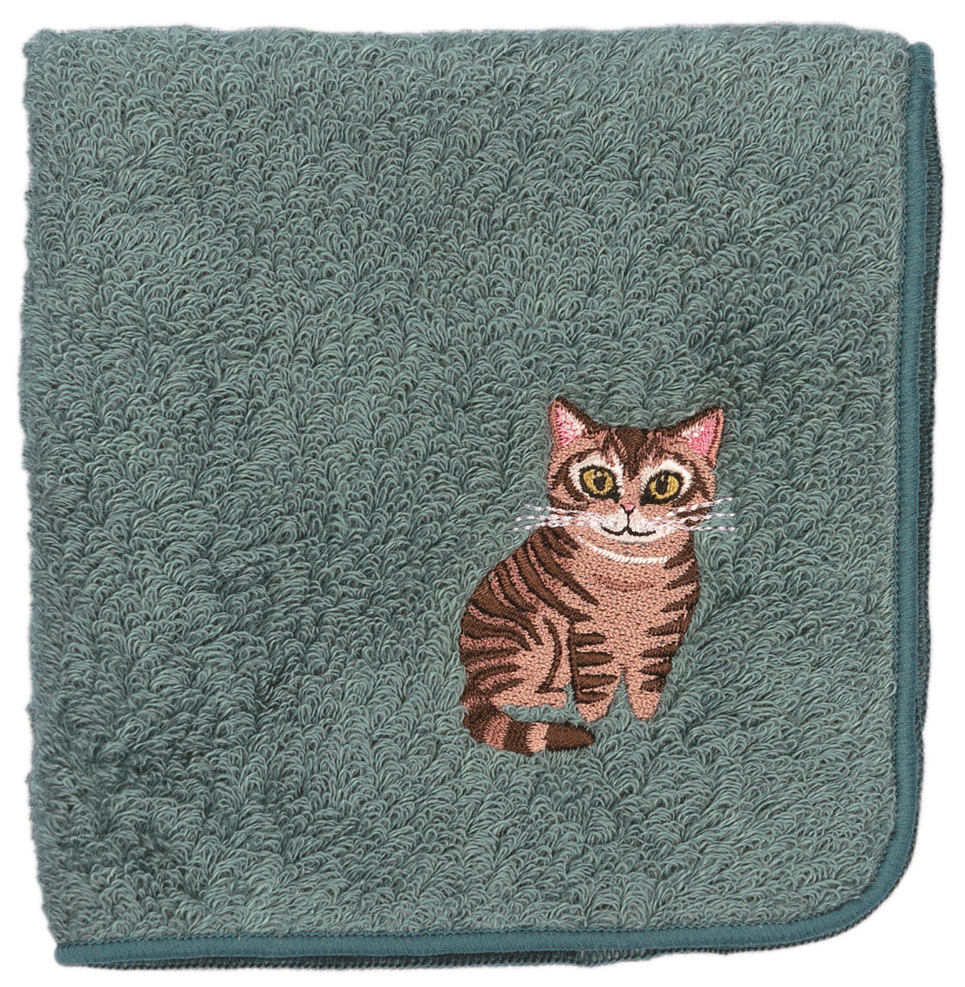 【HHD】 Japan Organic Cotton Embroidered Square Handkerchief - Amerikan shorthair(Dark Cyan)